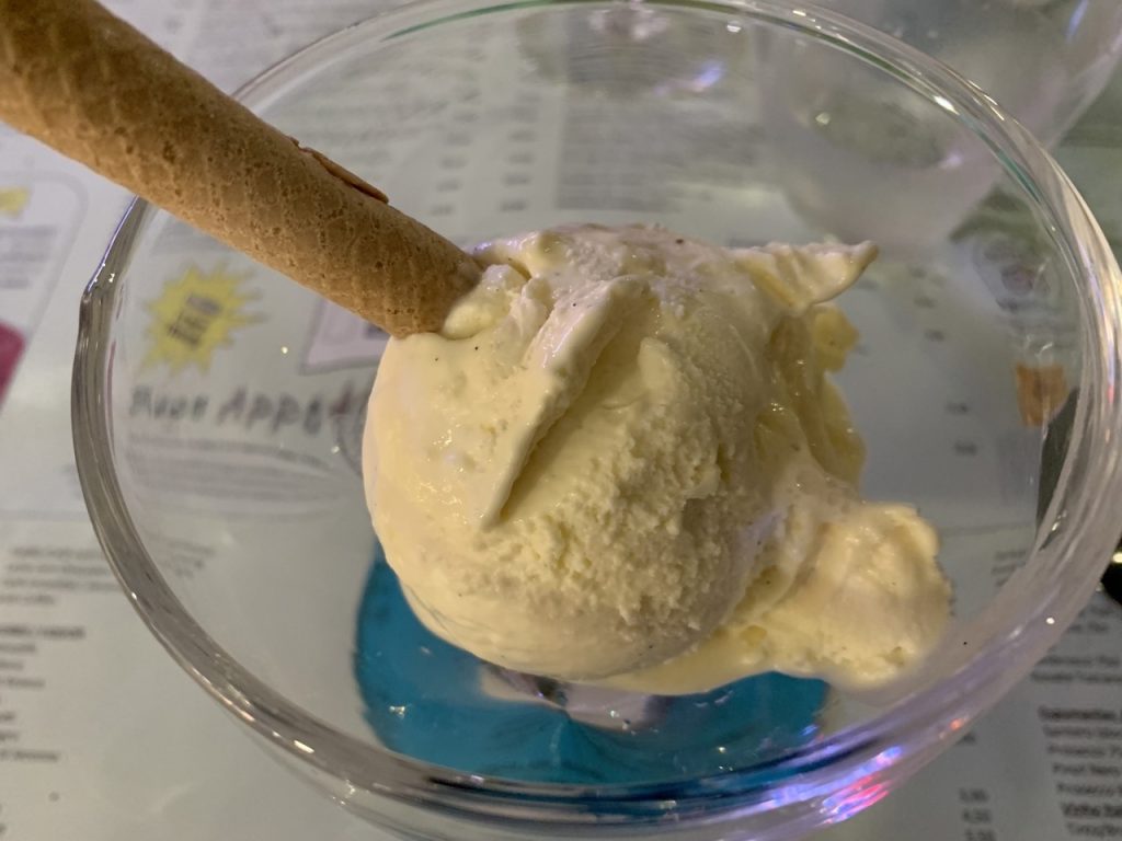 Para finalizar, veio, mesmo ali da gelataria, uma bola de gelado de baunilha como deve ser.